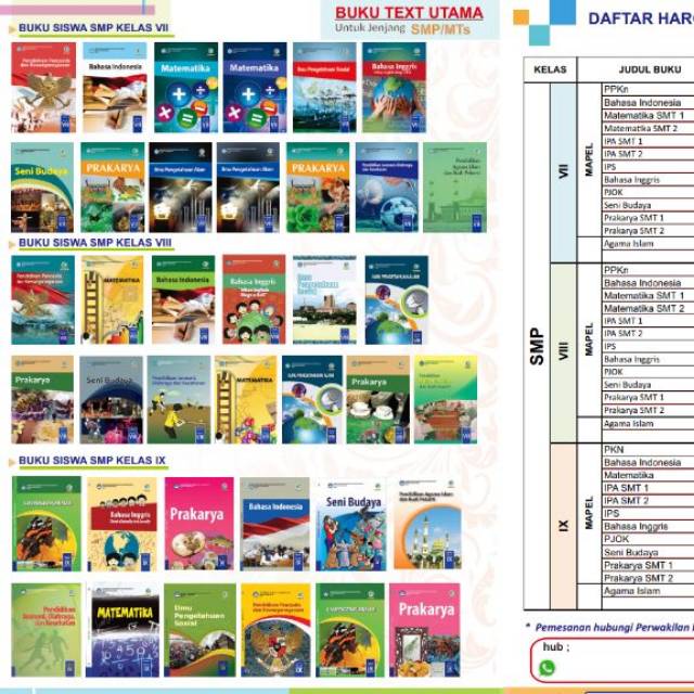 Berikut ini adalah list buku pelajaran yang bisa di . Buku ini merupakan buku siswa yang dipersiapkan pemerintah dalam rangka. Buku paket untuk smp/mts khusus pegangan guru · buku paket bse kurikulum 2013 untuk siswa smp edisi terbaru . Buku paket smp/mts kelas 7, 8, dan 9 lengkap. Buku guru dan buku siswa kelas 7 8 9 semua mata pelajaran semester 1 dan 2 kurikulum 2013 revisi terbaru.